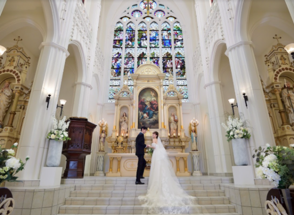 250年以上の歴史を持つステンドグラスが誓いの瞬間を彩り、8名の聖歌隊が奏でるハーモニーが感動的な挙式を演出します。